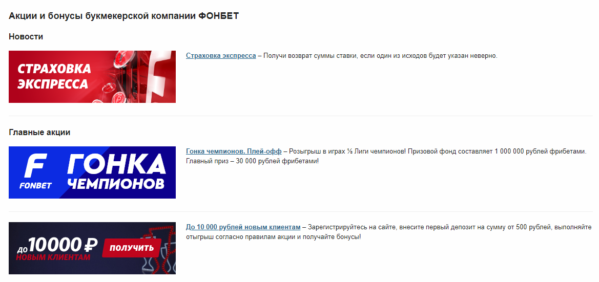 Другие акции «Фонбет»: