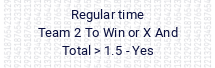 Regular time. Team 2 To Win or X And Total > 1.5 - Yes