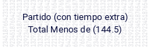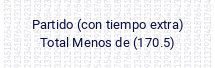 Partido (con tiempo extra). Total Menos de (165.5)
