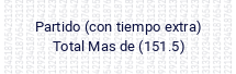 Partido (con tiempo extra). Total Mas de (132.5)